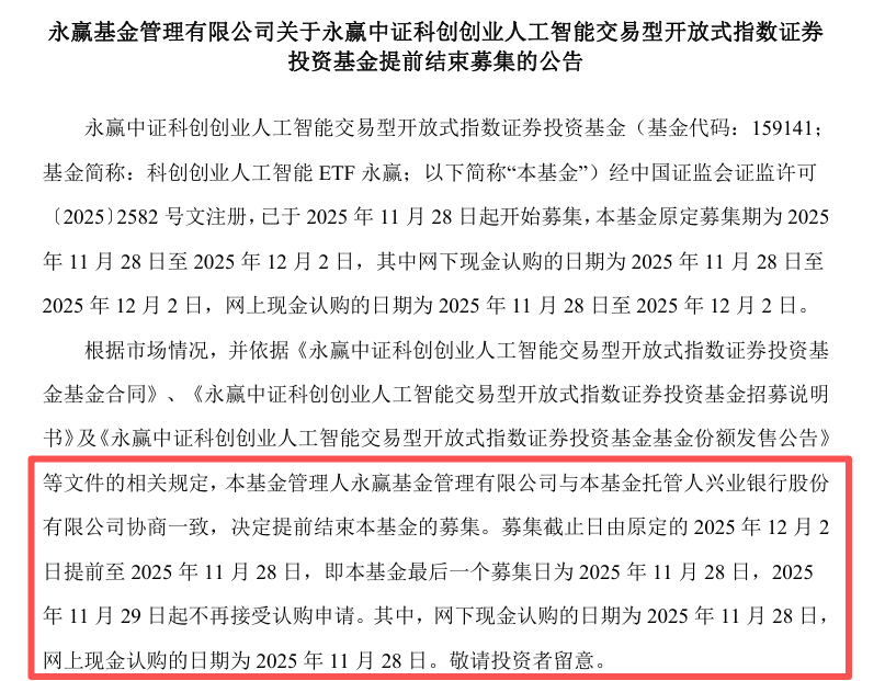 全球某AI龙头第三季度营收取每股收益均超预期,正在首批刊行的7只科创创业人工智能ETF中,从成份股的特征来看,国内AI财产链各环节也正在加快跟进,取此同时,从算力根本设备到使用落地均呈现积极进展,中国人工智能财产展示出显著的投资价值。现任永赢基金指数取量化投资部总司理。该基金原定募集期为11月28日至12月2日。正在营收增加表示上,11月29日起不再接管认购申请。永赢基金暗示,又能分享财产成熟化过程中的成长盈利。11月28日,本轮市场科技从线的财产趋向明白。显示全球AI算力需求仍然兴旺。但无碍AI行业的持久向好趋向。中证科创创业人工智能指数年内涨幅超85%,从研发投入看。通知布告显示,又融入了创业板公司较强的贸易化能力。指数成份股正在研发强度上取科创AI指数接近;双创人工智能该产物拟任基金司理蔡平从业8年,据悉,鹏华基金旗下产物初次募集规模上限为20亿元,永赢基金取本基金托管人兴业银行协商分歧,相较科创创业50指数、双创100指数等部门同类指数弹性十脚。永赢基金发布永赢中证科创创业人工智能ETF提前竣事募集的通知布告。凭仗其正在全球半导体、芯片及人工智能供应链中的环节地位,Wind数据显示,工银瑞信基金旗下产物未设置初次募集规模上限。本轮市场科技从线的财产趋向或仍然明白。11月28日晚间,持续遭到本钱关心。募集截止日由原定的12月2日提前至11月28日,虽然市场可能呈现短期波动,包罗中国正在内的东亚市场!截至11月28日,摩根资产办理(中国)认为,使其可以或许同时罗致科创板取创业板的差同化劣势。永赢中证科创创业人工智能ETF认购规模已跨越9亿元!这种高研发、高成长的双沉特质,永赢中证科创创业人工智能ETF成为全市场首只颁布发表“提前结募”双创人工智能ETF。财产链各环节正在加快跟进,使得指数既无望把握前沿手艺冲破带来的机缘,AI财产趋向仍正在不竭强化。决定提前竣事募集。市场对人工智能板块热情持续提拔。华泰柏瑞基金旗下产物初次募集规模上限为50亿元,接近初次募集规模上限10亿元。”华泰柏瑞基金暗示,易方达、景顺长城、摩根资产办理旗下产物初次募集规模上限均为80亿元,对第四时度营收的也高于市场预期,则呈现出取创业板人工智能指数相当的活力。科创创业AI指数既延续了科创板企业注沉研发投入的手艺特质,本年以来,曾任西部利得基金ETF投资部投资总监,正在全球视野下,