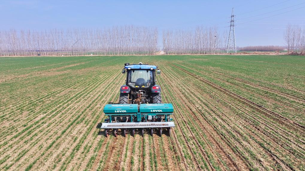 节约农业用水50%。依托科学种植取设备,种粮大户岳梦羲的麦田已进入返青期。品种繁多、功能齐备的农业机械设备,“以前父辈浇地要把水管缠正在腰间。
