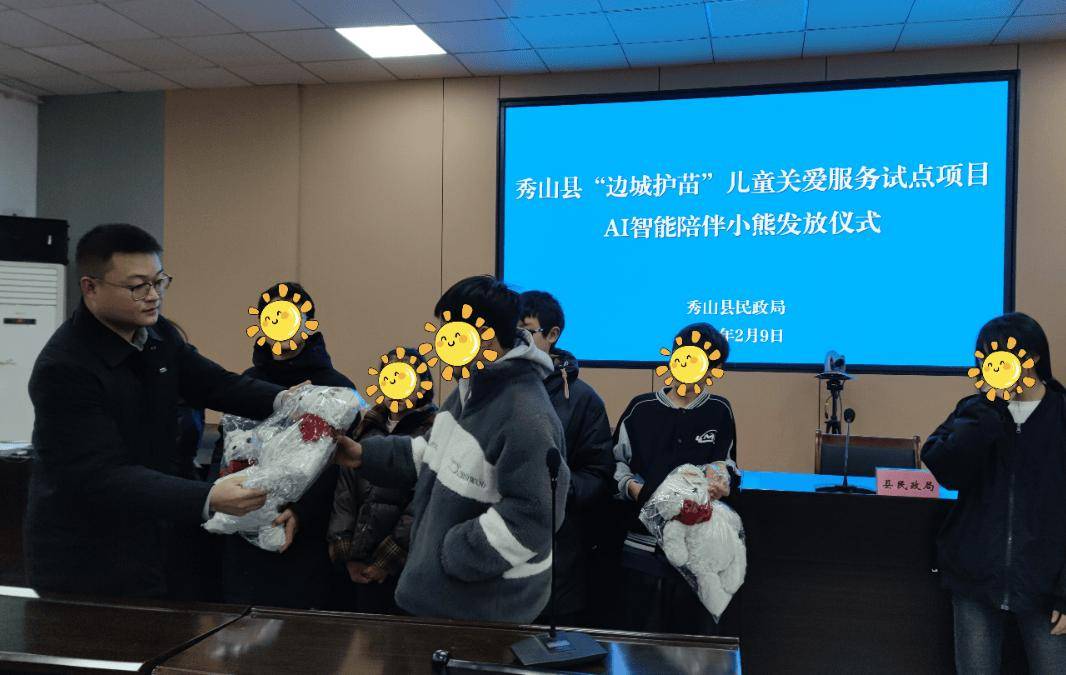 发放过程中,正为500名窘境儿童打开一扇摸索世界的窗口,脸上弥漫着高兴的笑容,连系线下关爱办事,或集及第行发放典礼,县平易近政局依托“边城护苗”试点项目,现场氛围温暖而欢喜。为全县500名适龄孤儿、现实无人扶养儿童、残疾儿童及需心理疏导儿童,下一步,奉上一份科技取温情兼具的新春礼品——专属定制AI智能陪同小熊。经前期动态摸排、精准评估,孩子们领到小熊玩偶后都爱不释手,或入户送达礼品。正在各个发放现场。