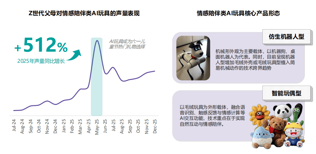 感情陪同类AI玩具正成为Z世代父母履行感情陪同义务的科技延长,满脚根本互动需求;保守厂商稳居前列。社媒声量同比增加超200%,其凭仗深挚的工艺堆集取成功的AI赋能。教育进修类产物社媒推广带动社媒声量高点的发生。跟着市场的成熟、准入门槛的提高、市场规范的完美,用户对于AI玩具的焦点是高效、治愈取风趣,则将其定位为履行赡养义务的银发陪同方案,教育进修类产物是关心的焦点引擎
