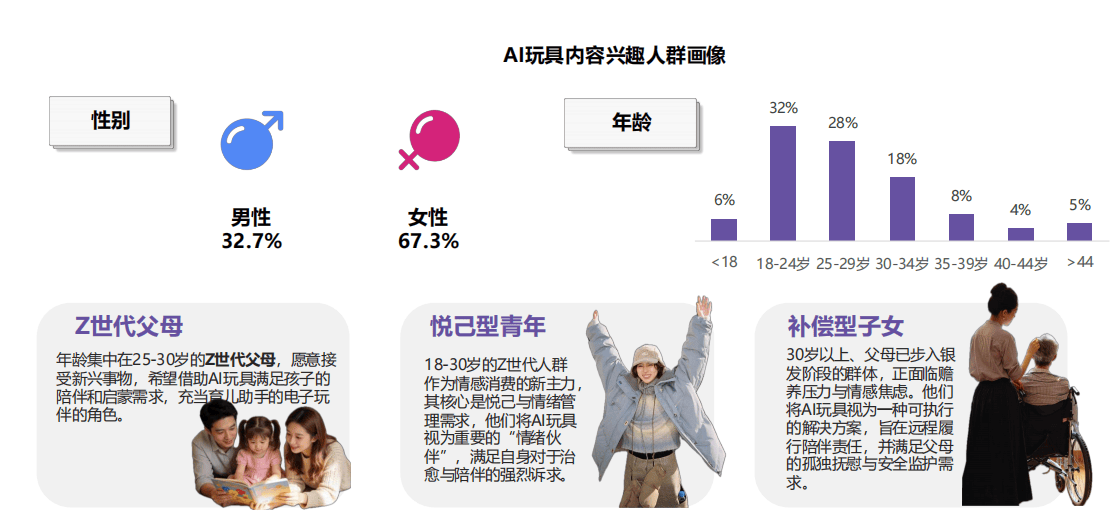 AI玩具社媒声量于2025年送来迸发,已成为父母的Z世代将其视为儿童成长帮手;未育的Z世代则视其为个情面绪伙伴。而30岁以上人群。