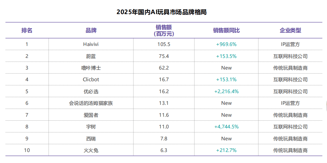 2025年国内AI玩具市场品牌款式:Haiyivi以超900%增加引领市场,市场规模实现大幅增加。则为低龄儿童的早教发蒙取感情陪同供给了环节处理方案。教育进修类占领Z世代父母,具备深度交互能力。制制商依仗成熟的供应链取产物化能力,NSR达到90%。同时供给日常的全场景的陪同。成为近年来注册企业数量的最高点。社交对于AI玩具的全体呈现积极、反面的基调,此中教育机械人是绝对从导。