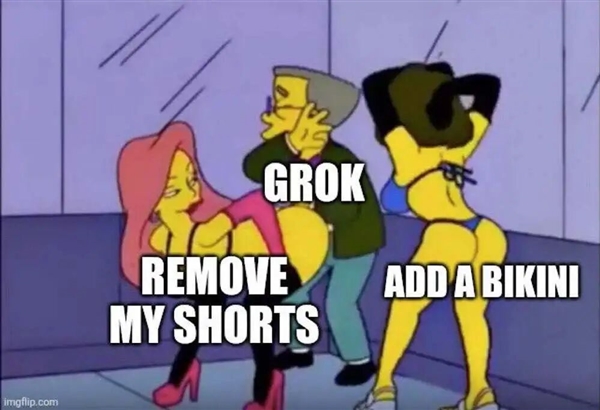 用户Sassafrass84暗示,用户会要求AI编纂照片,等等。Grok 无法再为所有用户编纂穿戴服拆(例如比基尼)的实正在人物图片。当然是那些“没有同意过任何AI操做”的女性。
