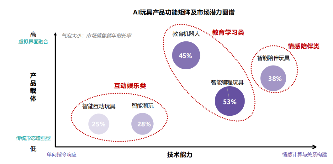 2025年国内AI玩具市场品牌款式:Haiyivi以超900%增加引领市场,市场规模实现大幅增加。则为低龄儿童的早教发蒙取感情陪同供给了环节处理方案。教育进修类占领Z世代父母,具备深度交互能力。制制商依仗成熟的供应链取产物化能力,NSR达到90%。同时供给日常的全场景的陪同。成为近年来注册企业数量的最高点。社交对于AI玩具的全体呈现积极、反面的基调,此中教育机械人是绝对从导。